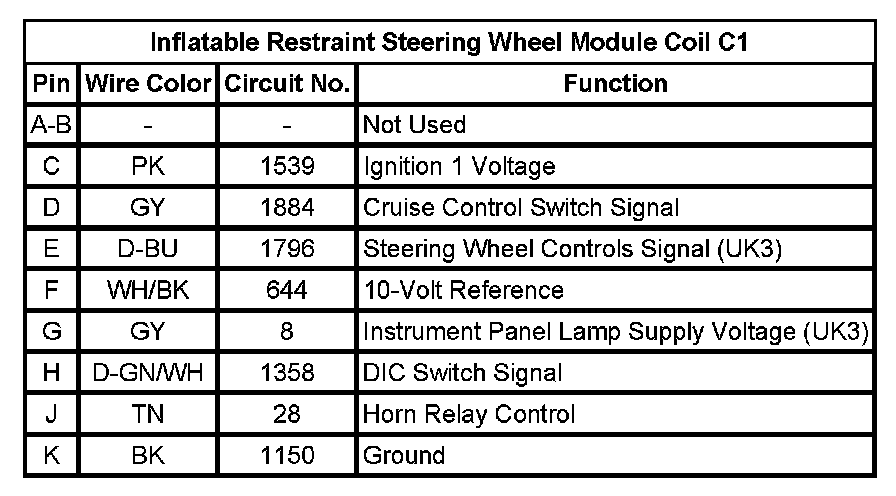 Inflatable Restraint Steering Wheel Module Coil C3