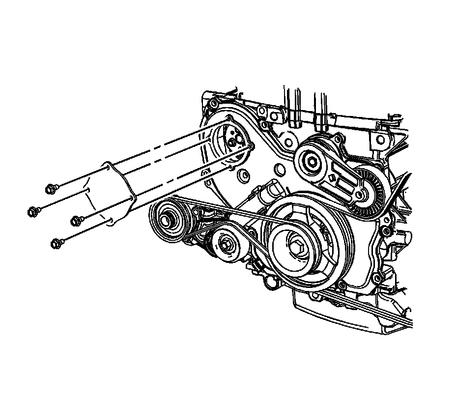 Important: Be sure to remove both water pump bolts from the front of the engine block.
