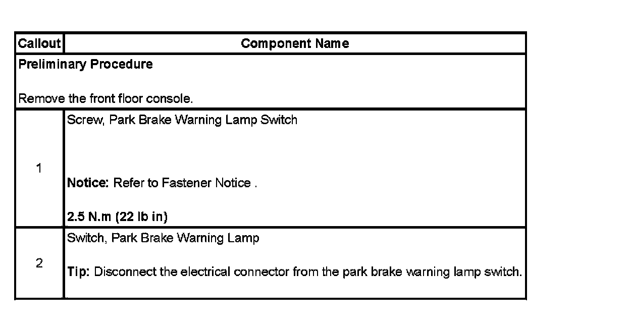 Park Brake Warning Lamp Switch Replacement