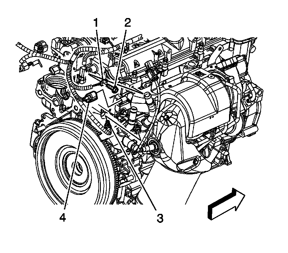 2. Disconnect the engine wiring harness electrical connector (3) from the engine coolant temperature (ECT) sensor.