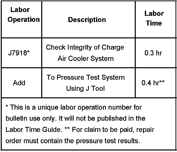 If your dealer has the Duramax Diesel Charge Air Cooler Tester J 46091, it can be used to check the system on this vehicle following the procedure listed below. If your dealer does not have the Duramax Diesel Charge Air Cooler Tester, it can be purchased by contacting SPX Kent-Moore at 1-800-GM-TOOLS.