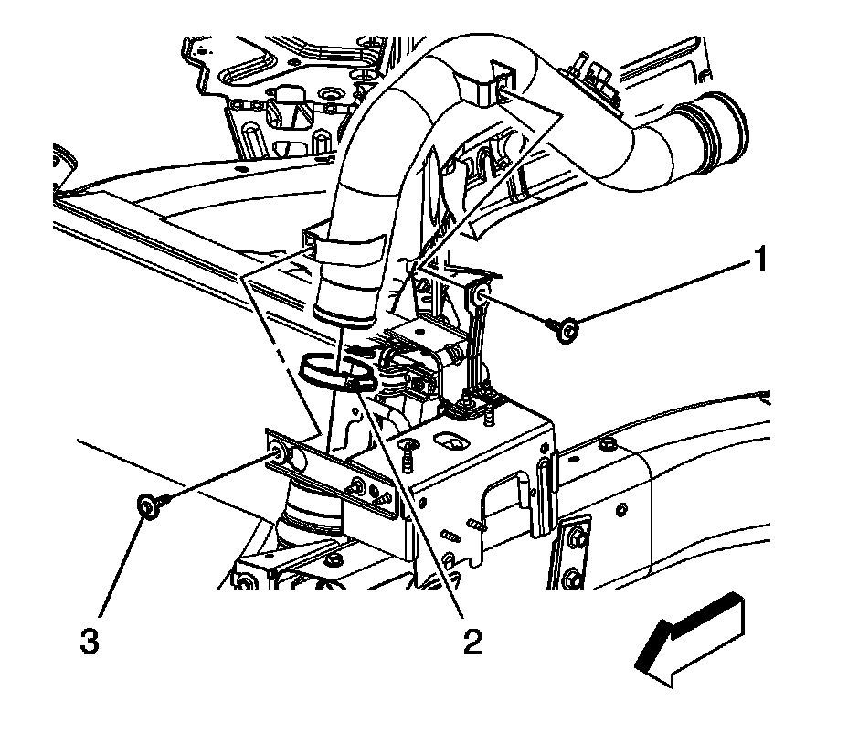 2. Install the charge air cooler outlet pipe bolt (3) at the front bracket.