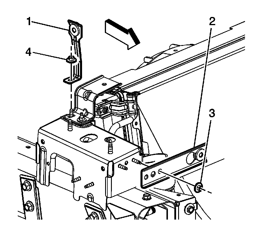 3. Install the charge air cooler rear bracket (1) and nut (4).
