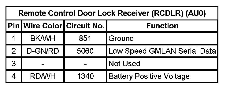Remote Control Door Lock Receiver (RCDLR) (AU0)