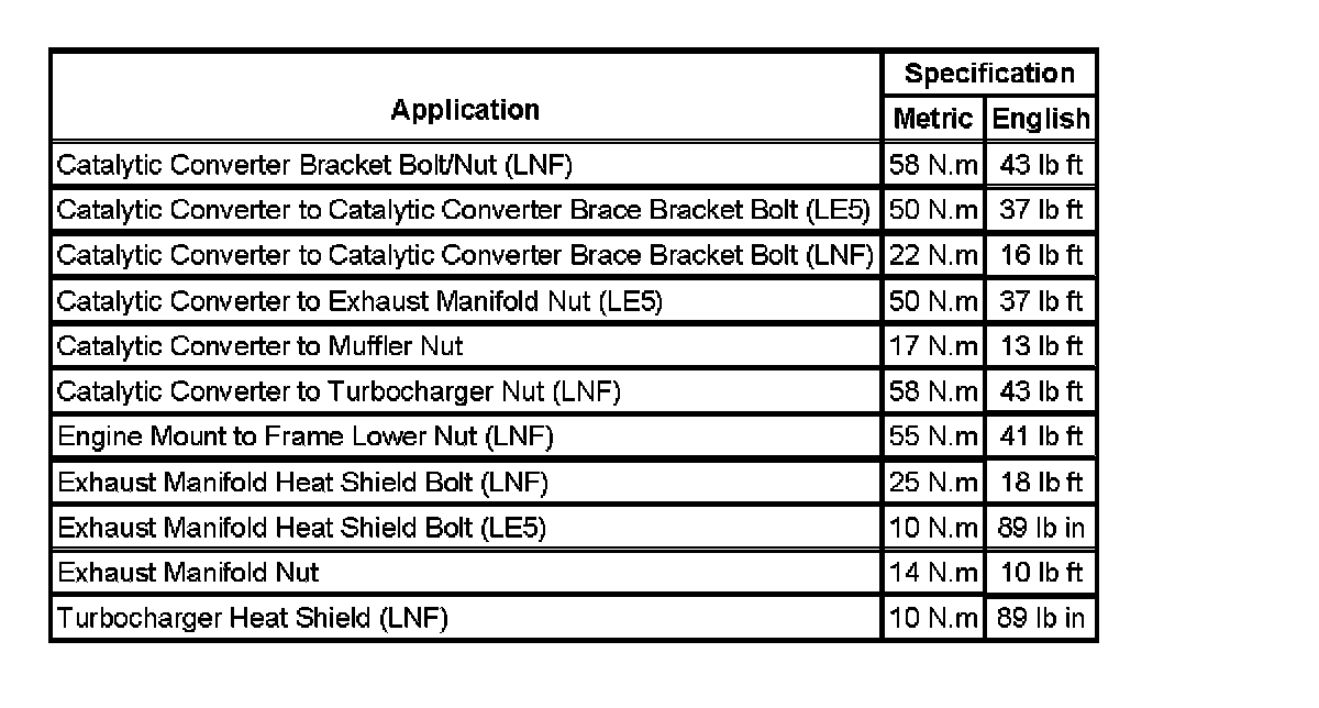 Fastener Tightening Specifications: