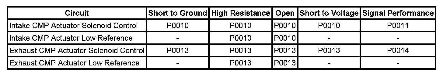 - Intake Camshaft Position (CMP) Actuator Solenoid Control Circuit