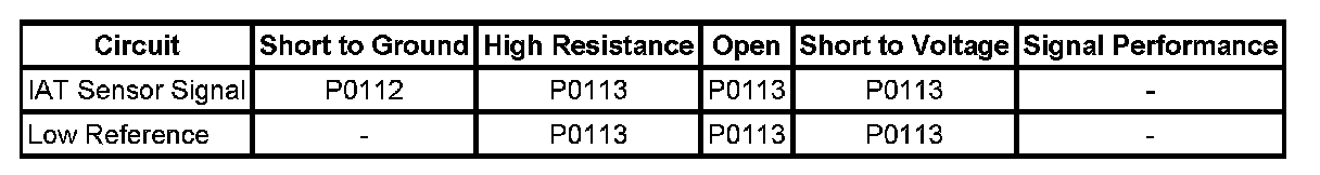 * An IAT sensor signal circuit that is shorted to the MAF sensor ignition circuit can cause a DTC P0113 to set.