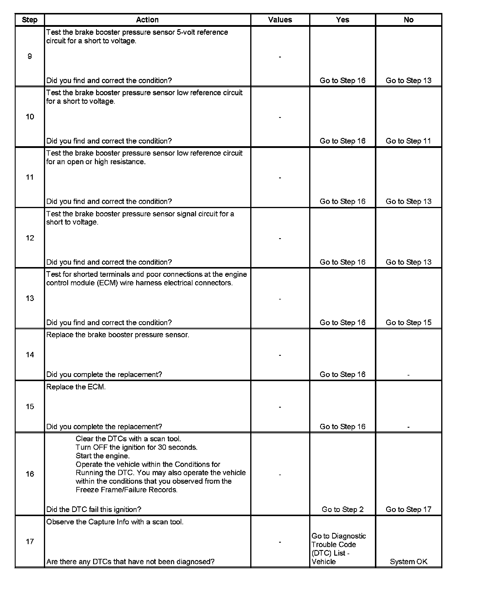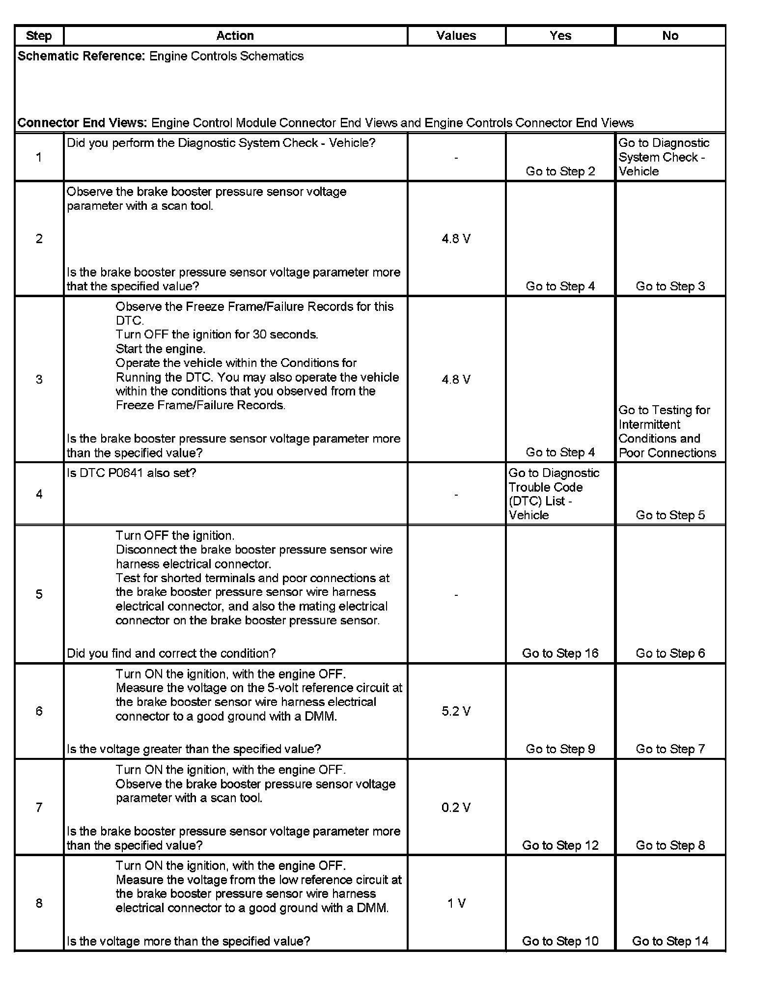 The ECM detects greater than 4.89 volts on the brake booster sensor signal circuit for more than 12.5 milliseconds.