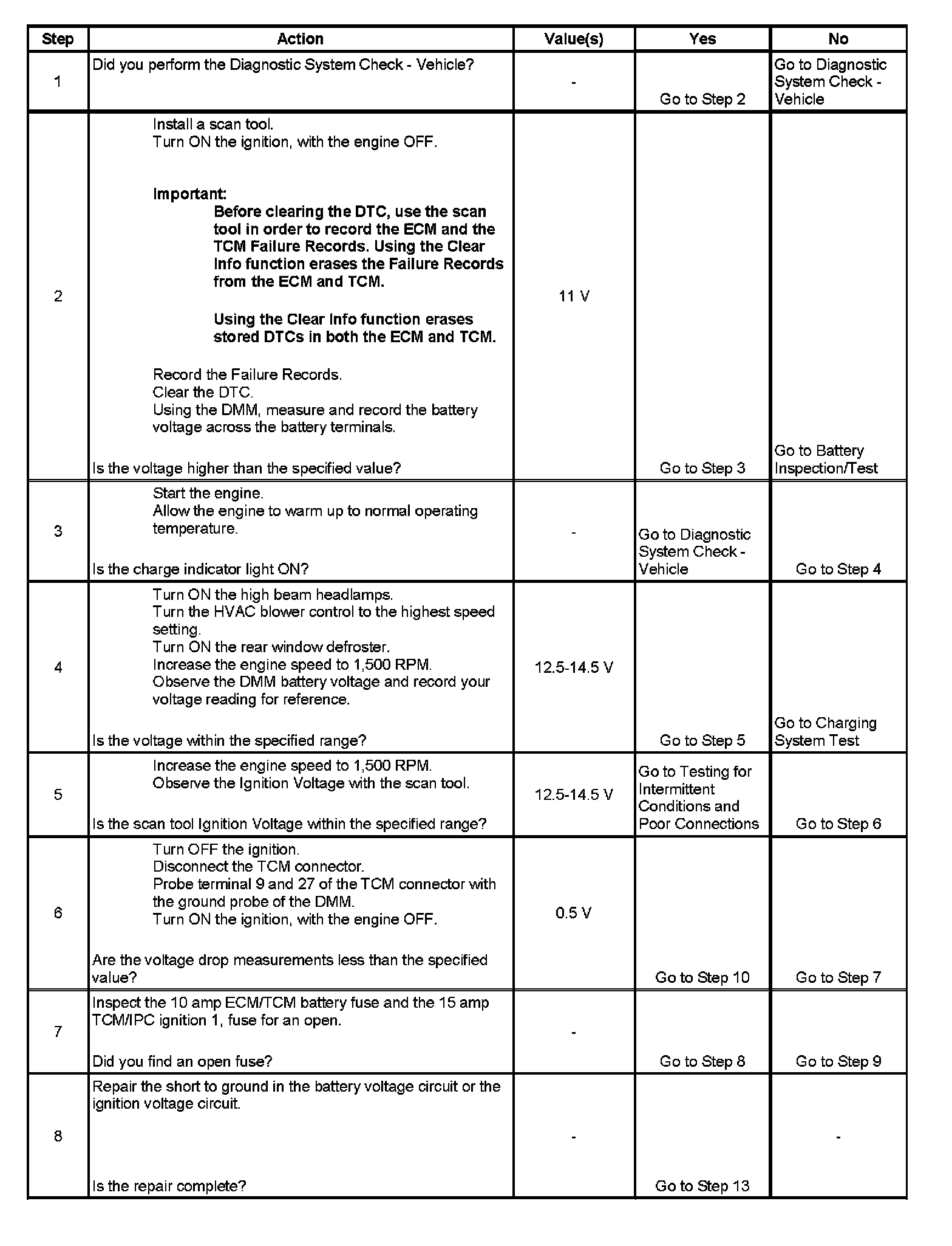 6. This step tests the voltage drop from the battery and ignition voltage input at the TCM.