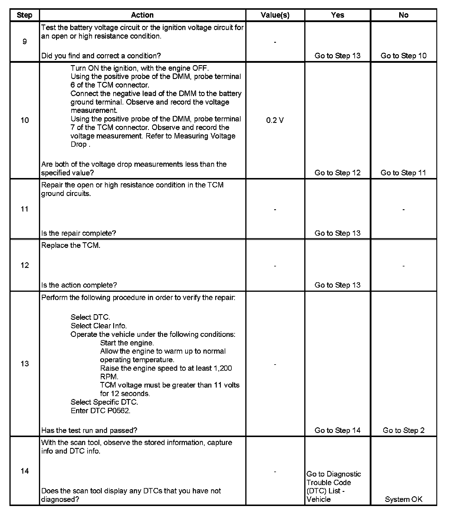 When the TCM detects low voltage, DTC P0562 sets. DTC P0562 is a type C DTC.