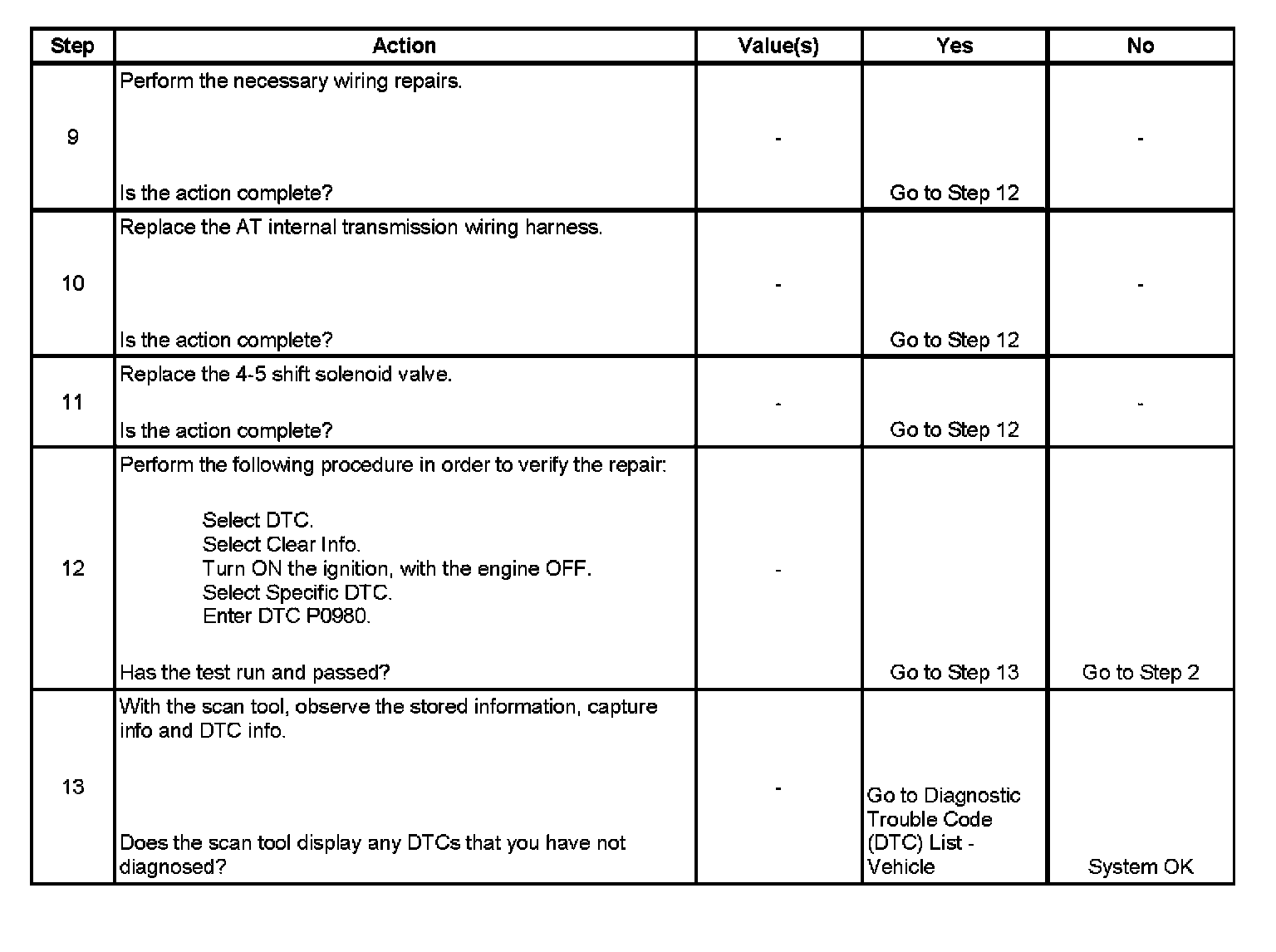 When the TCM detects a continuous short to voltage in the 4-5 shift solenoid valve circuit, then DTC P0980 sets. DTC P0980 is a type B DTC.