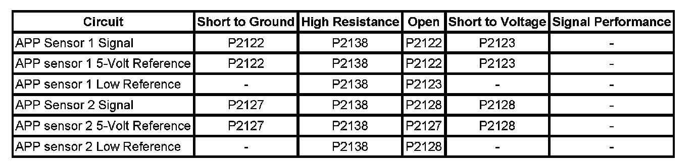 - Accelerator Pedal Position (APP) Sensor 1 Circuit High Voltage