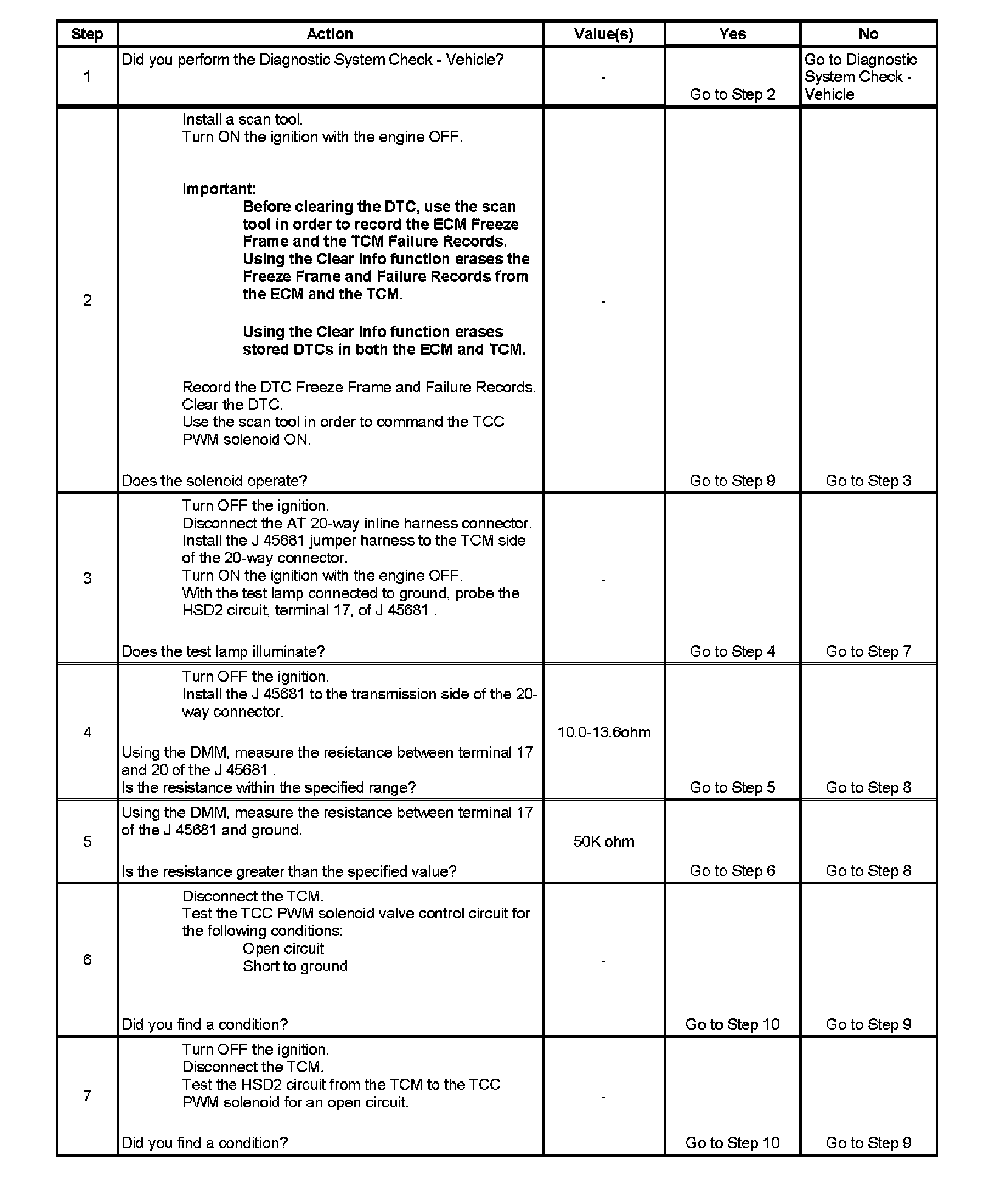 * The TCM detects a short to ground in the TCC PWM solenoid valve circuit when the PWM duty cycle is greater than 20 percent but less than 50 percent.