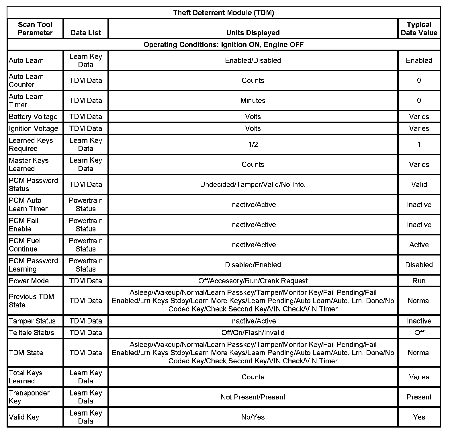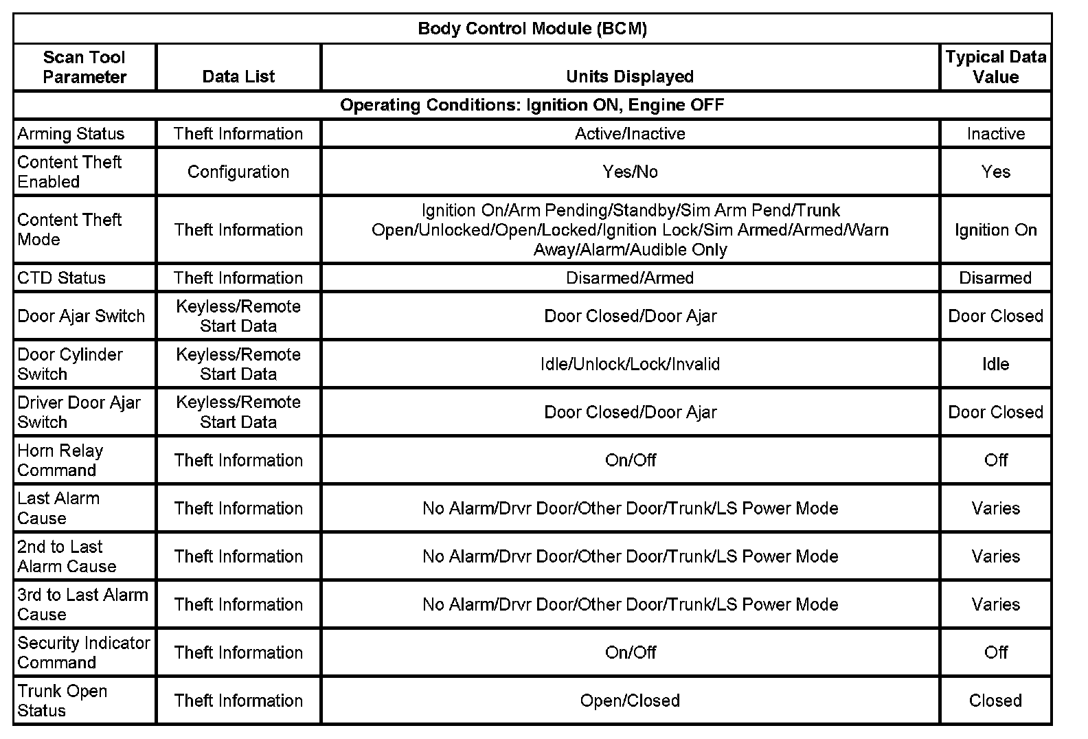 Scan Tool Data List