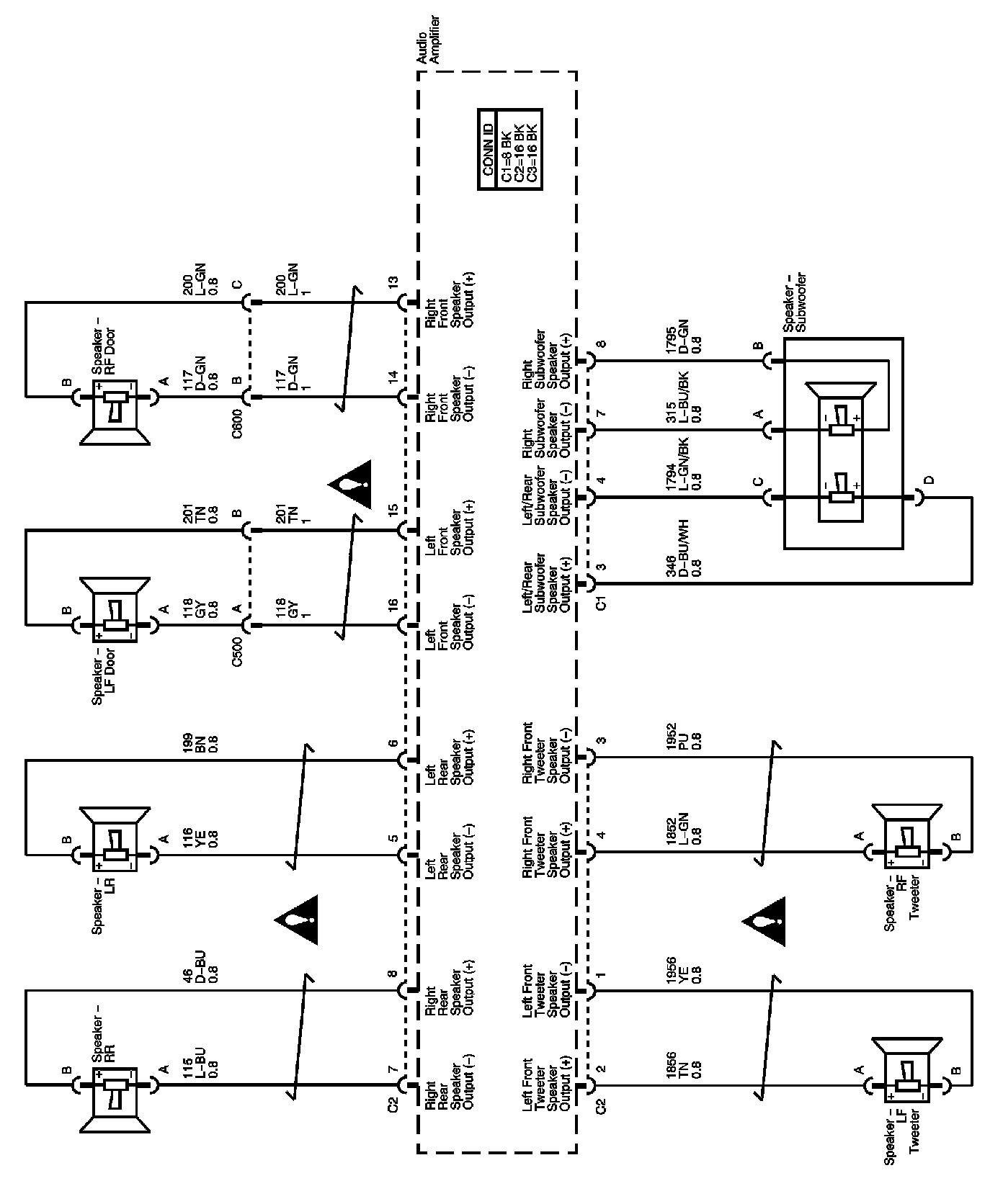 Locations: The locations for the Connectors, Grounds, Splices, and Grommets shown within these diagrams can be found via their numbers at Vehicle Locations. Locations