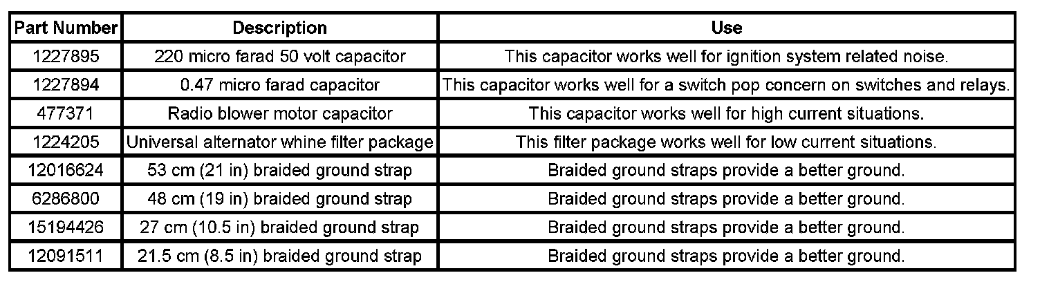 7. If the installation of this filter causes a delay when turning the radio ON or OFF, or other noticeable performance problems, remove the filter and install a 0.47 micro farad capacitor (P/N 1227894) to chassis ground.
