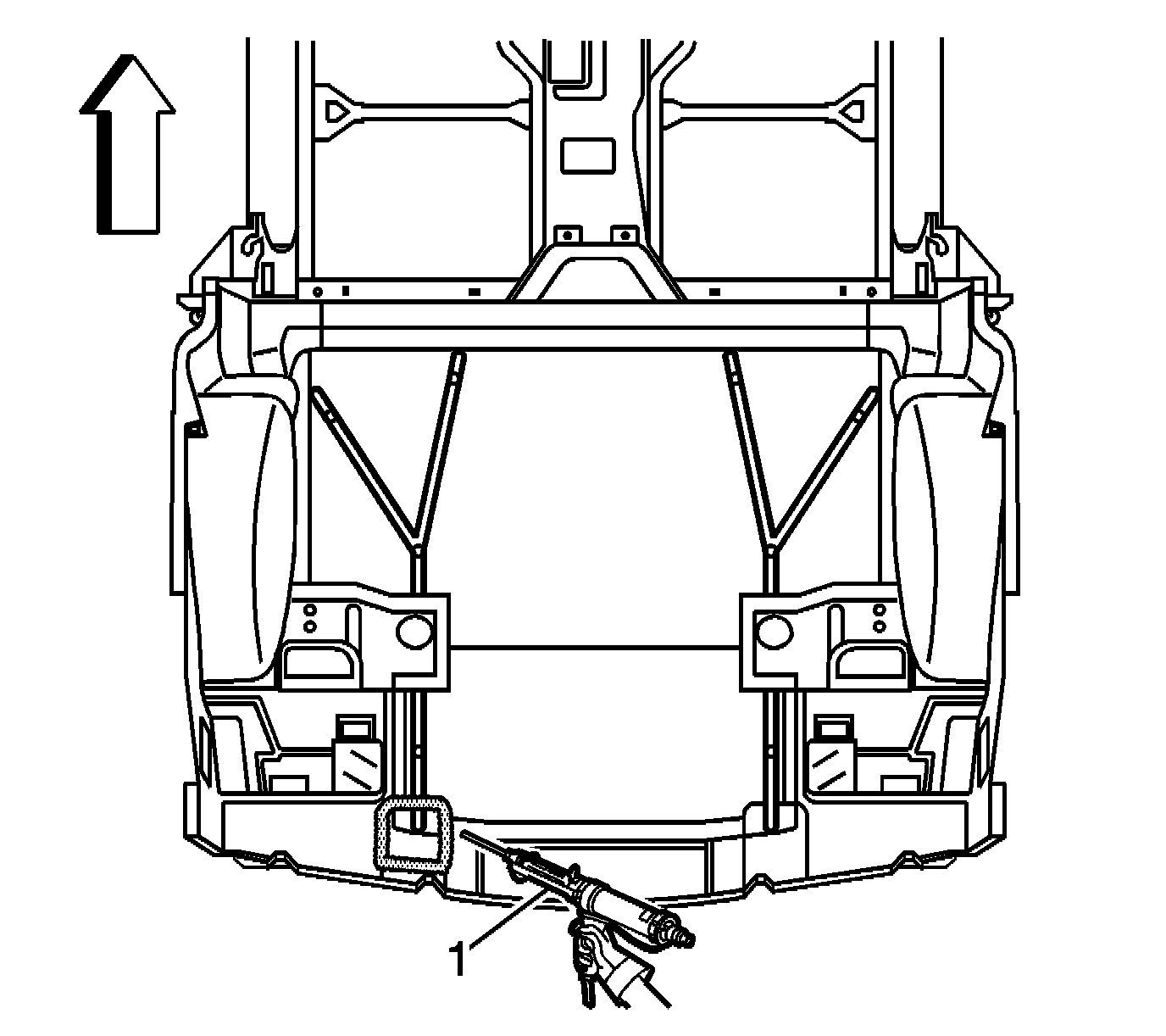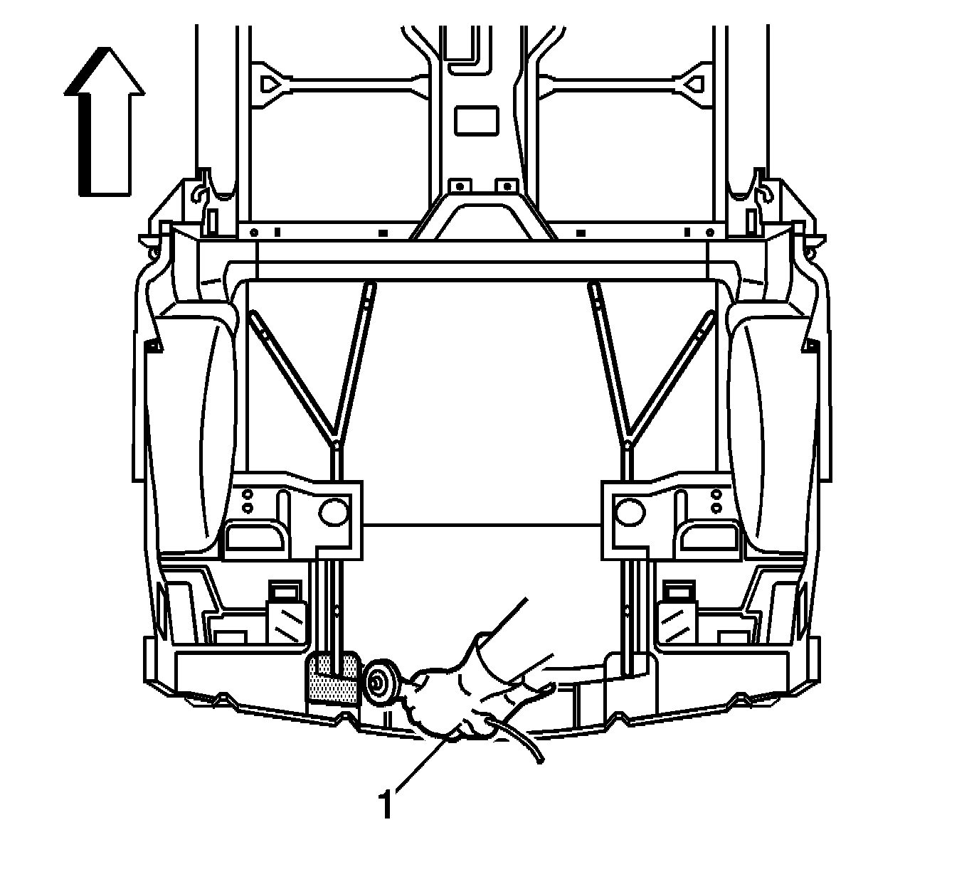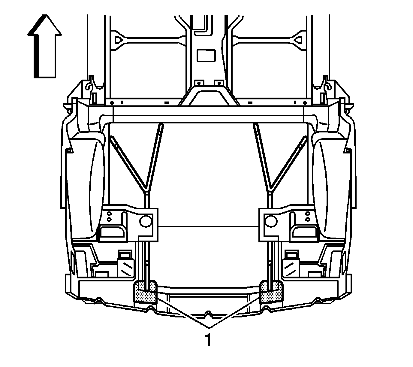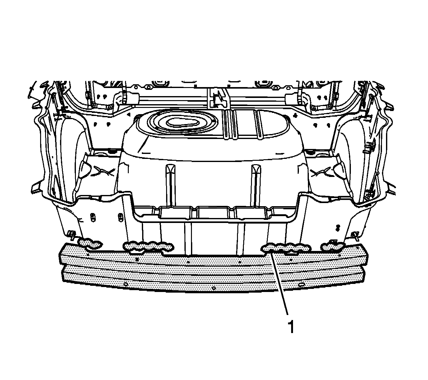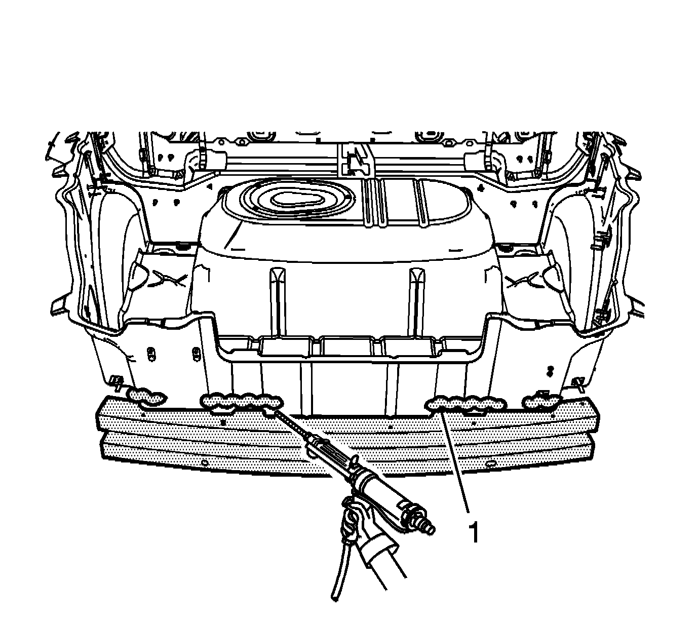 1. Apply a consistent bead of structural adhesive to the top impact bar (1) to bond the rear compartment panel. Refer to Sheet Molded Compound (SMC) Panel Bonding.
