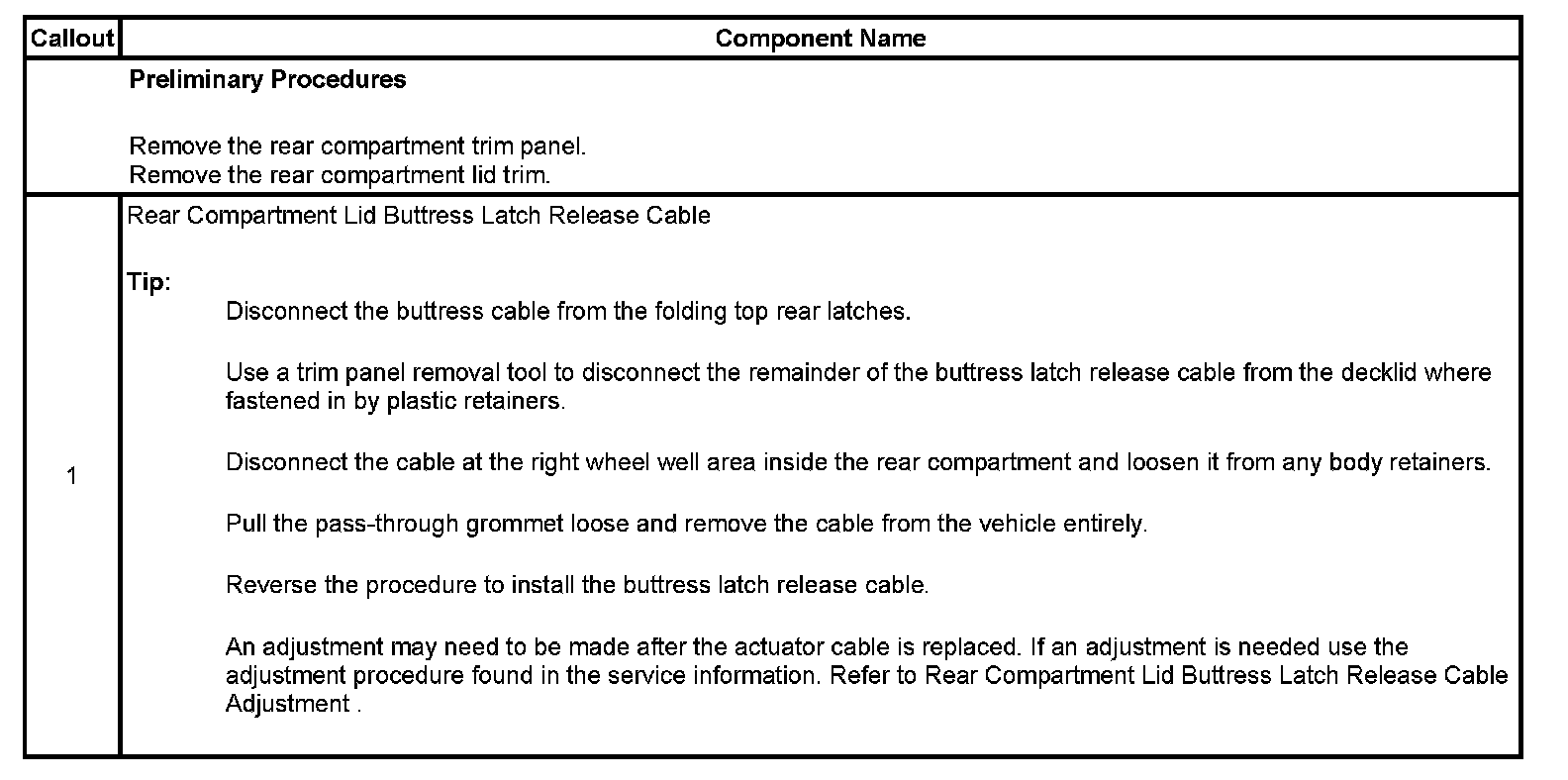 Rear Compartment Lid Buttress Latch Release Cable Replacement