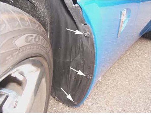 2. Discard the three j-clips and the 7 mm bolts in the rear of the front wheel house liner.