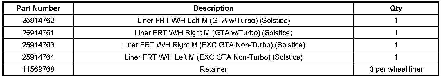 Front Wheelhouse Liner Cracking (Replace Wheelhouse Liner and Install Push Pin Retainers)