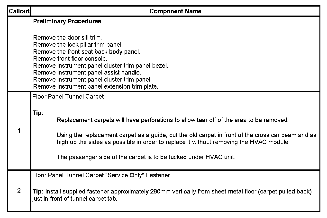 Floor Panel Tunnel Carpet Replacement