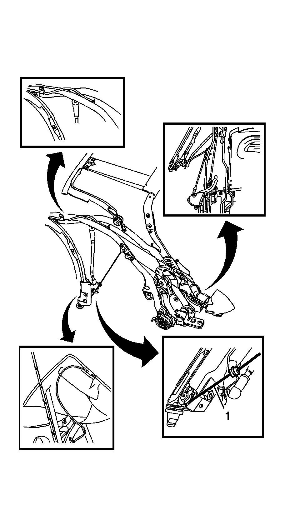 14. Remove the wire loop that retains the cable on the buttress link by drilling out the rivets.