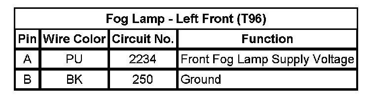 Fog Lamp - Left Front (T96)