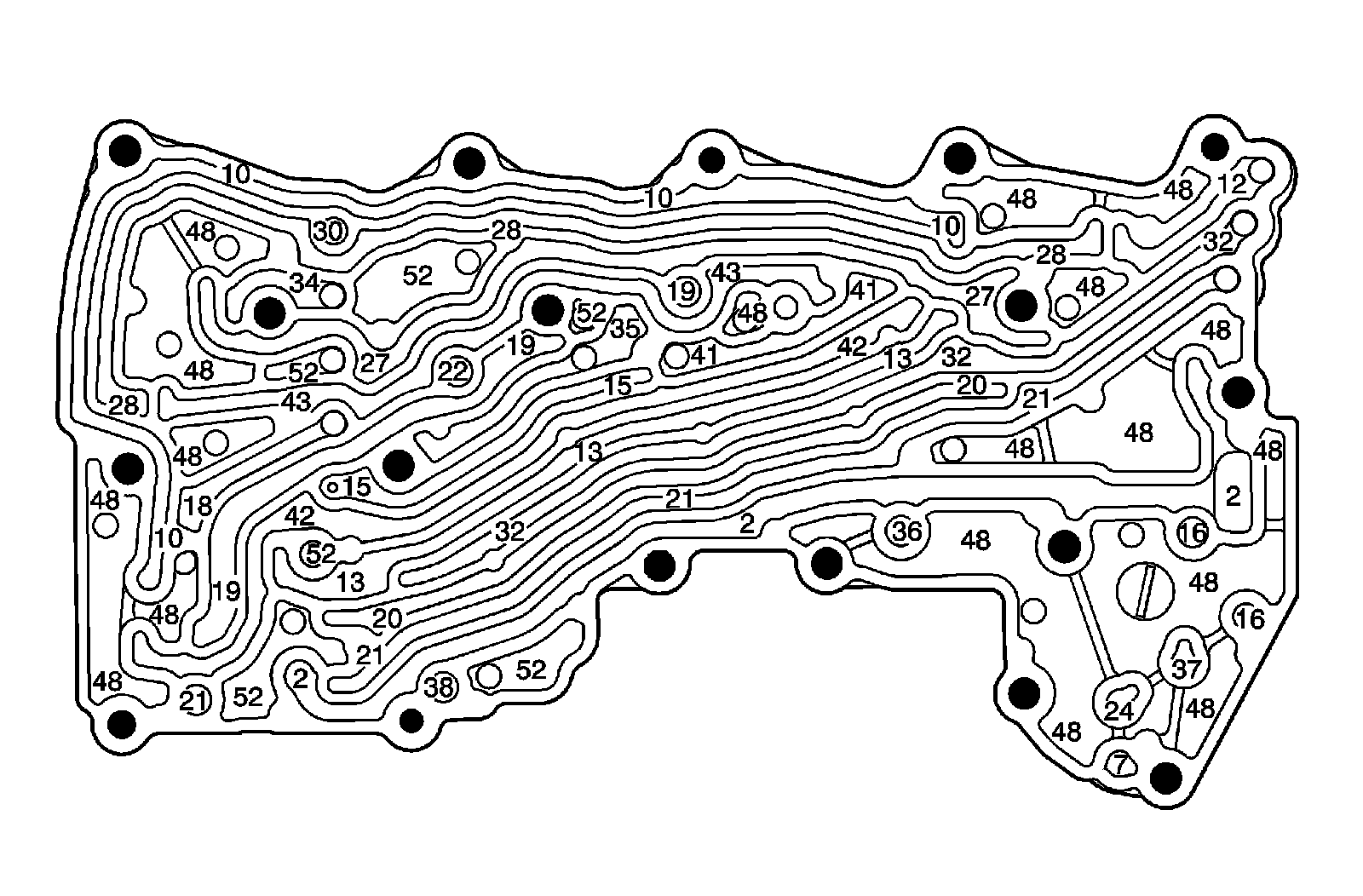 Rear Control Valve Body - Bottom Channel Plate Side