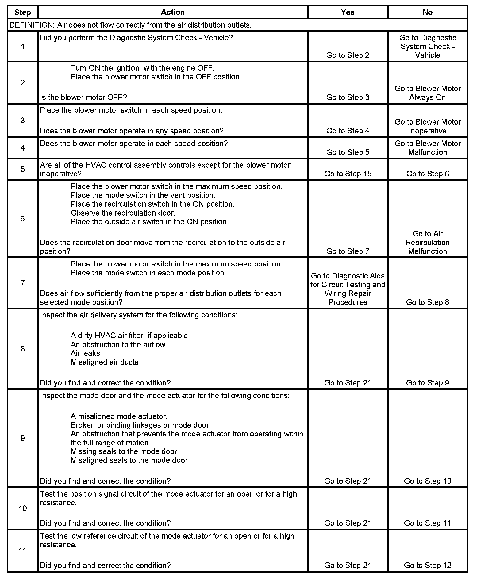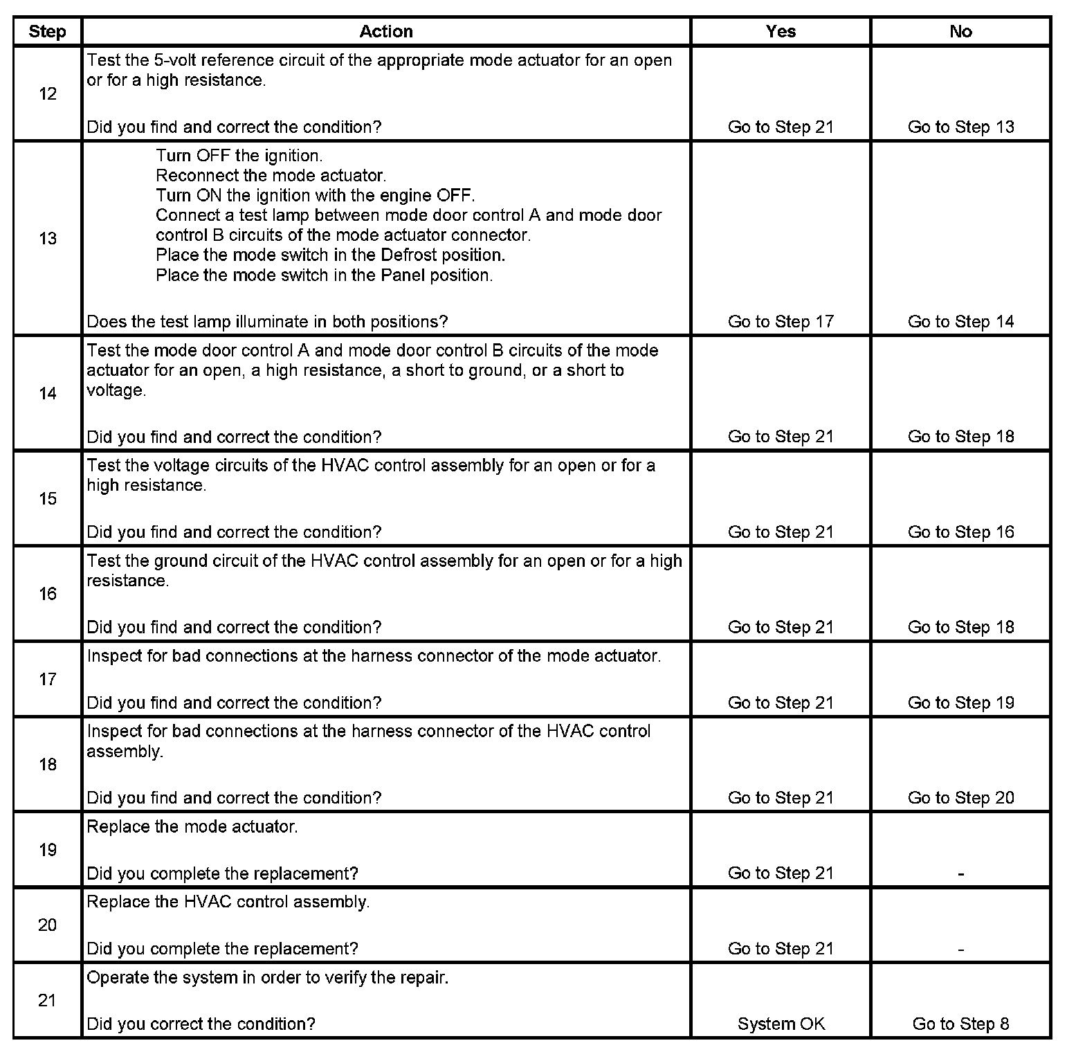 13. The test lamp should illuminate while trying to command the mode door in both directions.