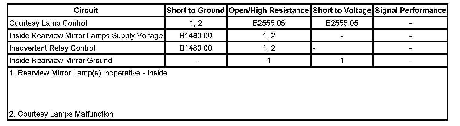 Inside Rearview Mirror Lamp(s) Inoperative