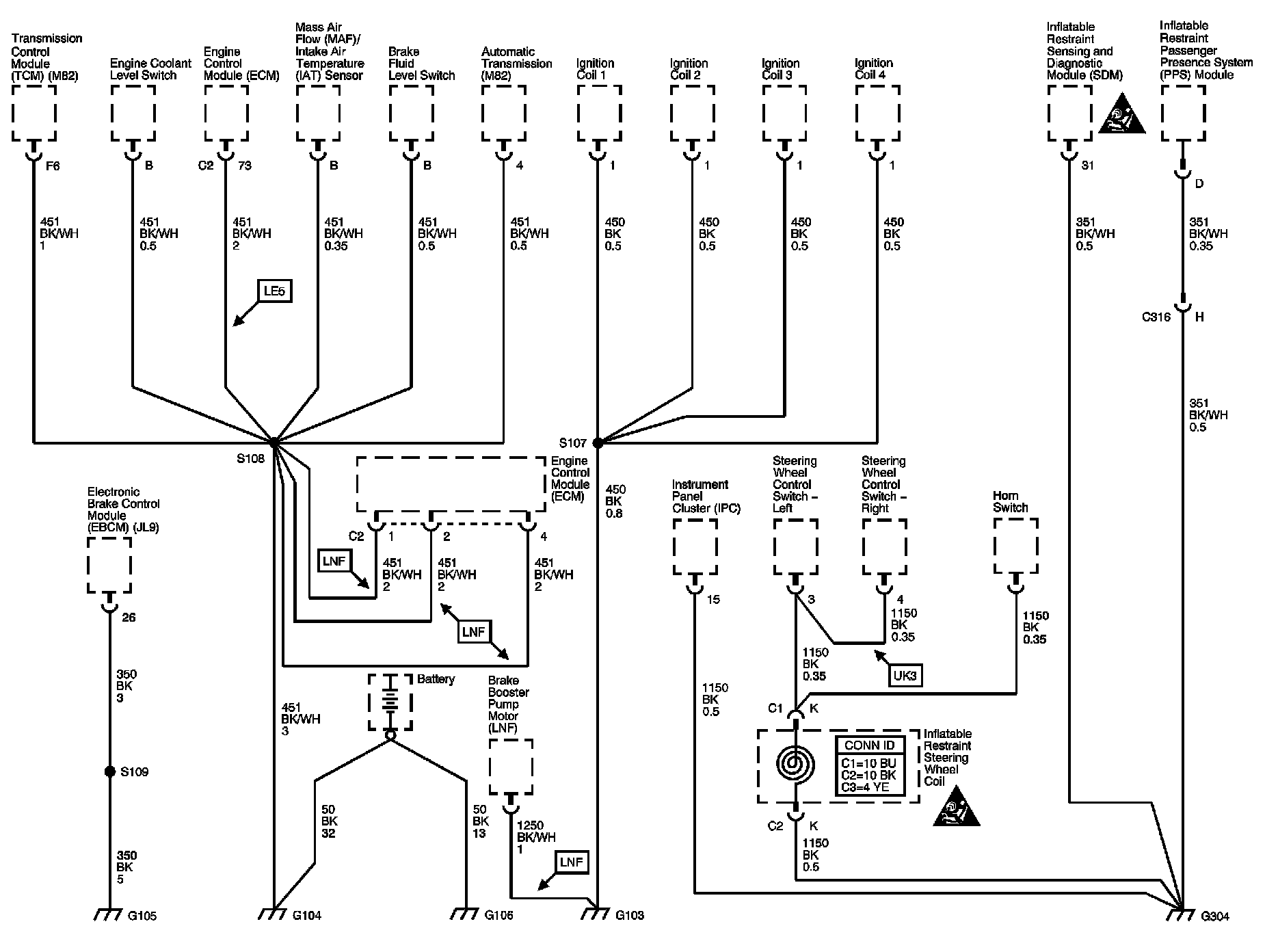 The locations for the Connectors, Grounds, Splices, and Grommets shown within these diagrams can be found via their numbers at Vehicle Locations.