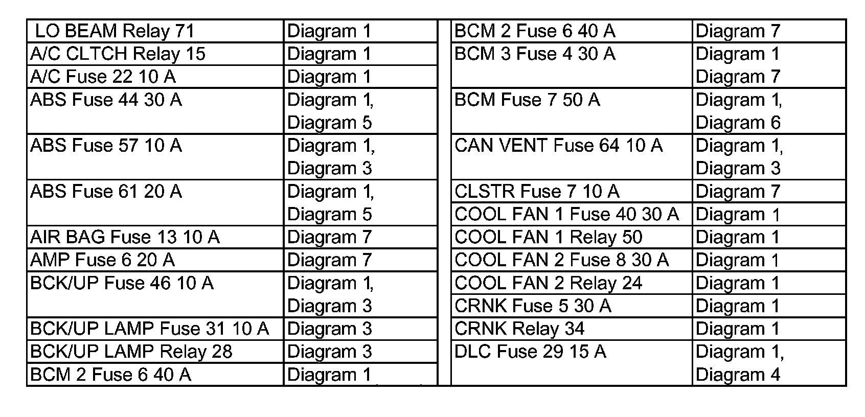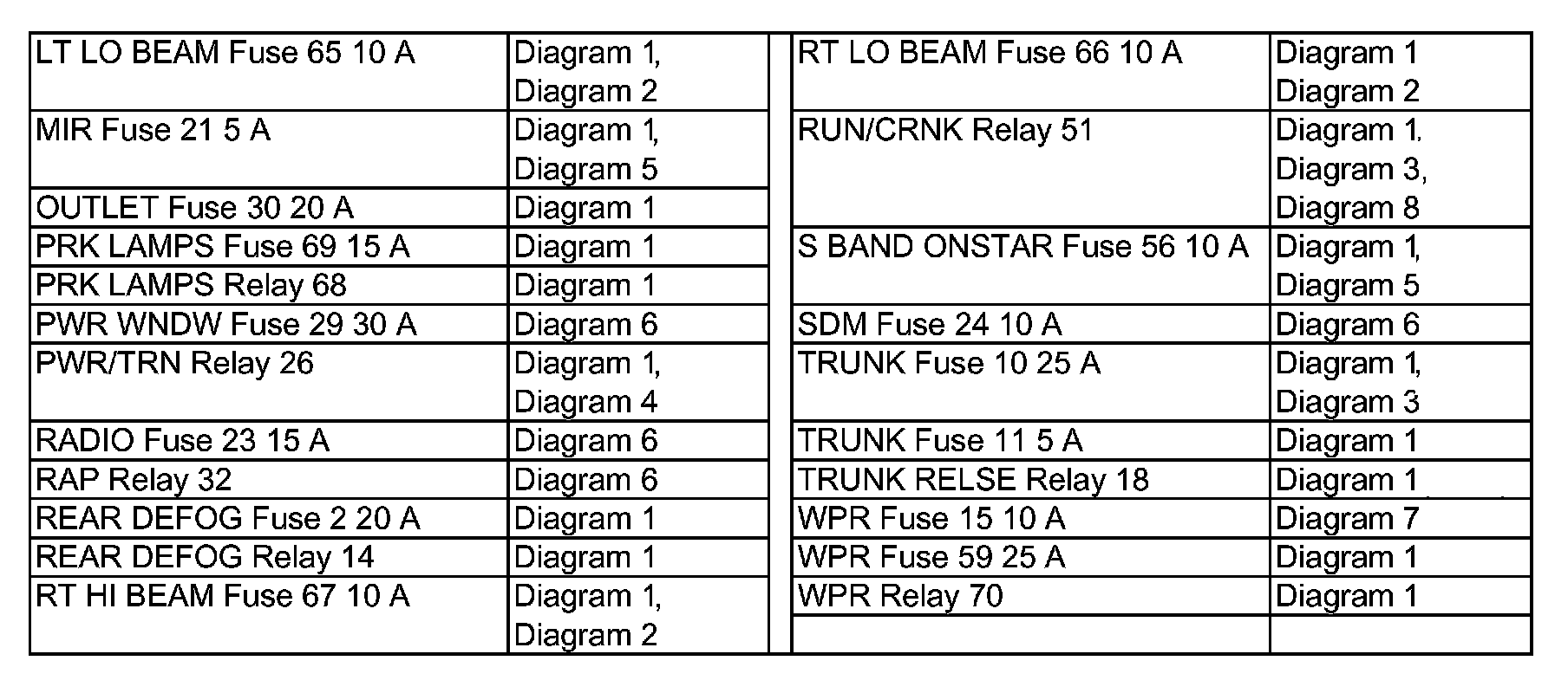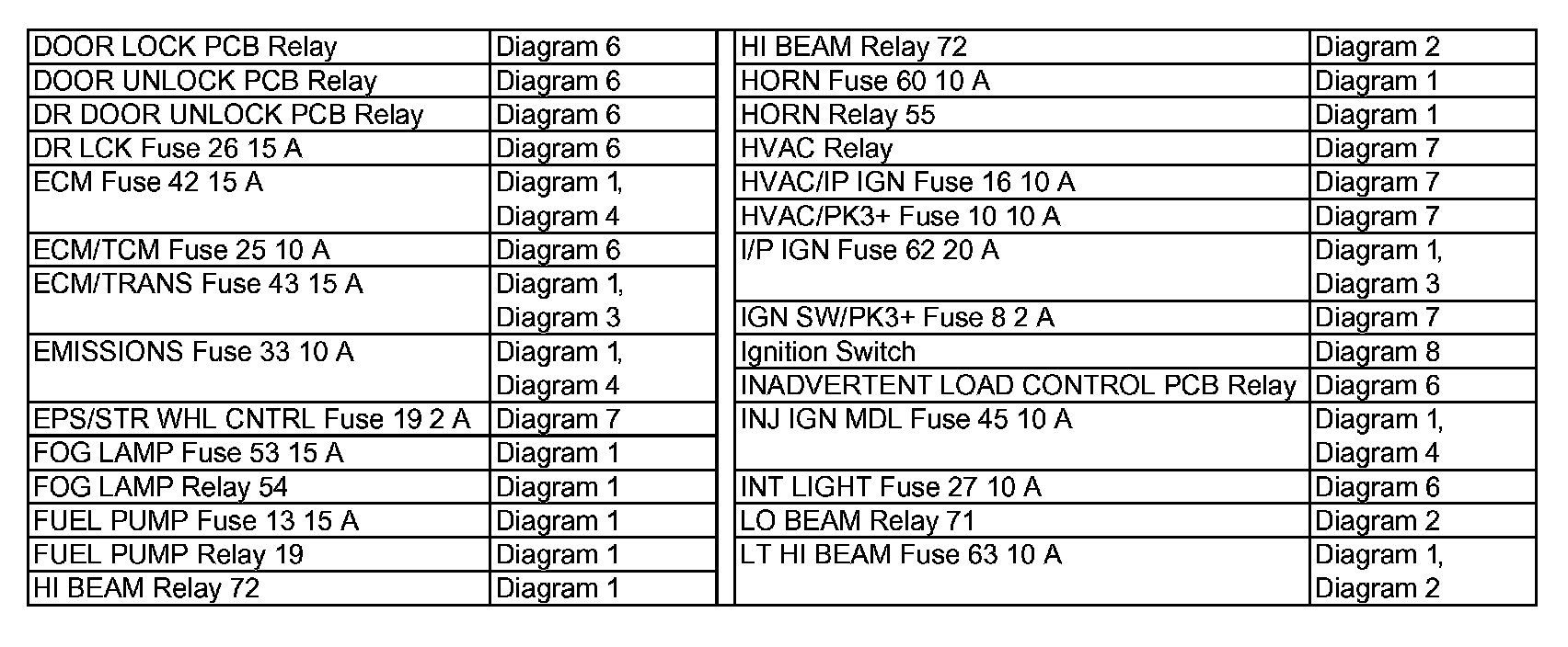 Power Distribution Diagram Index