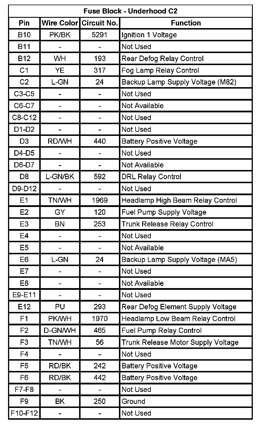 Fuse Block - Underhood C2 (Pin B10 To F12):