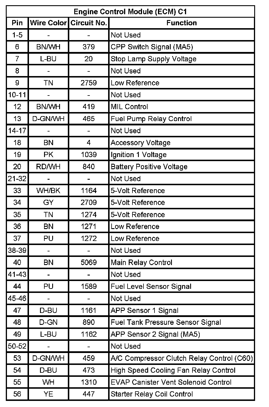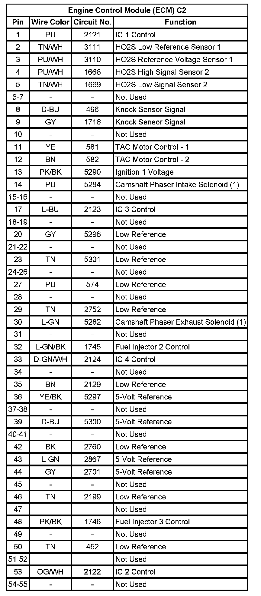 Engine Control Module (ECM) C2 (Pin 1 To 55):