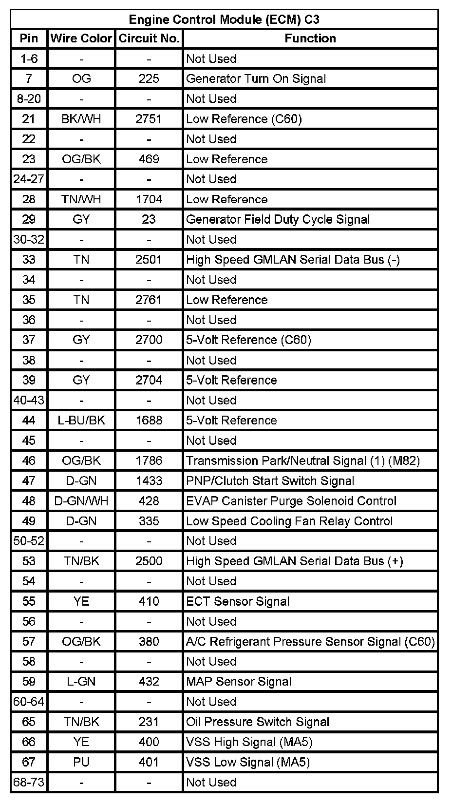 Engine Control Module (ECM) C2 (Pin 56 To 73):