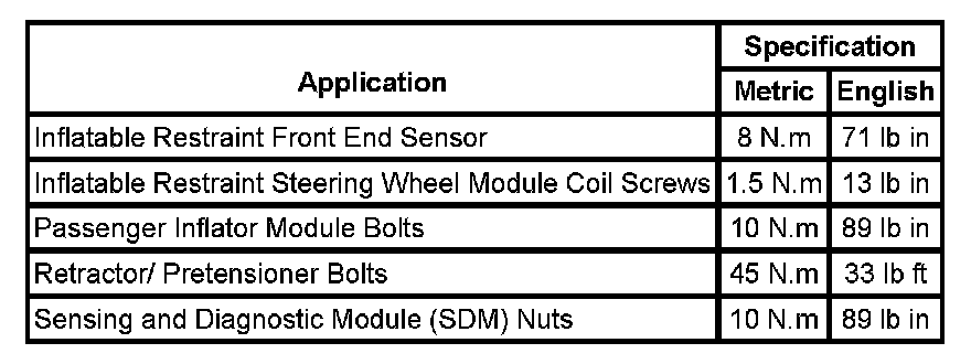 Air Bag Systems: Specifications