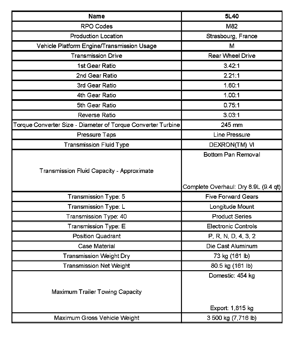 Transmission General Specifications