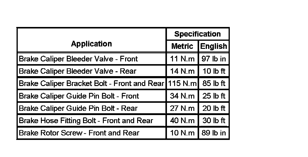 Fastener Tightening Specifications: