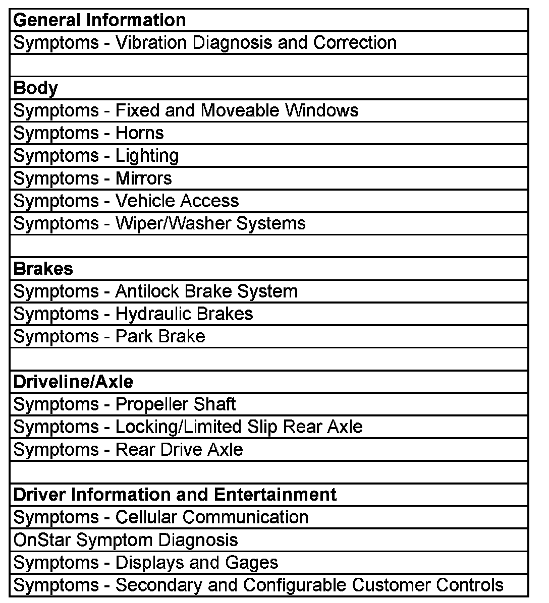 Symptoms - Vehicle