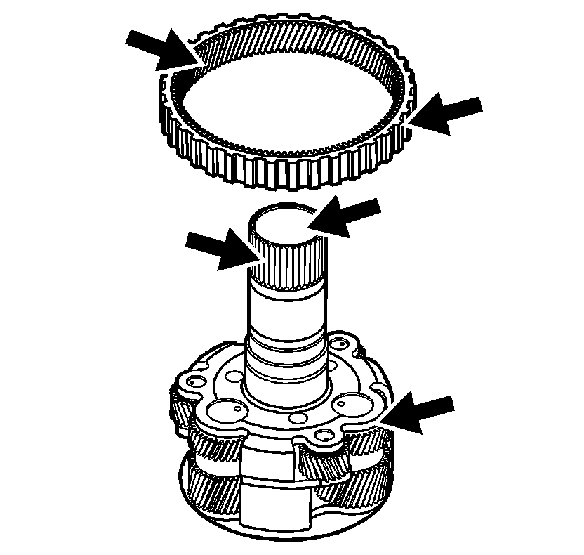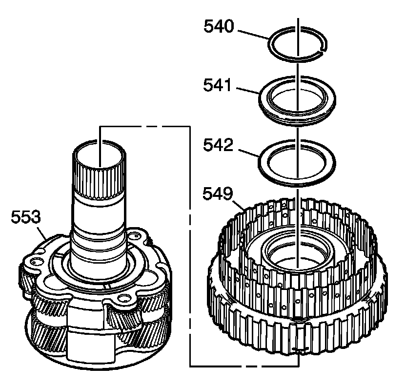 8. Install the input and reaction carrier outer ring (540) onto the input and reaction carrier (553).
