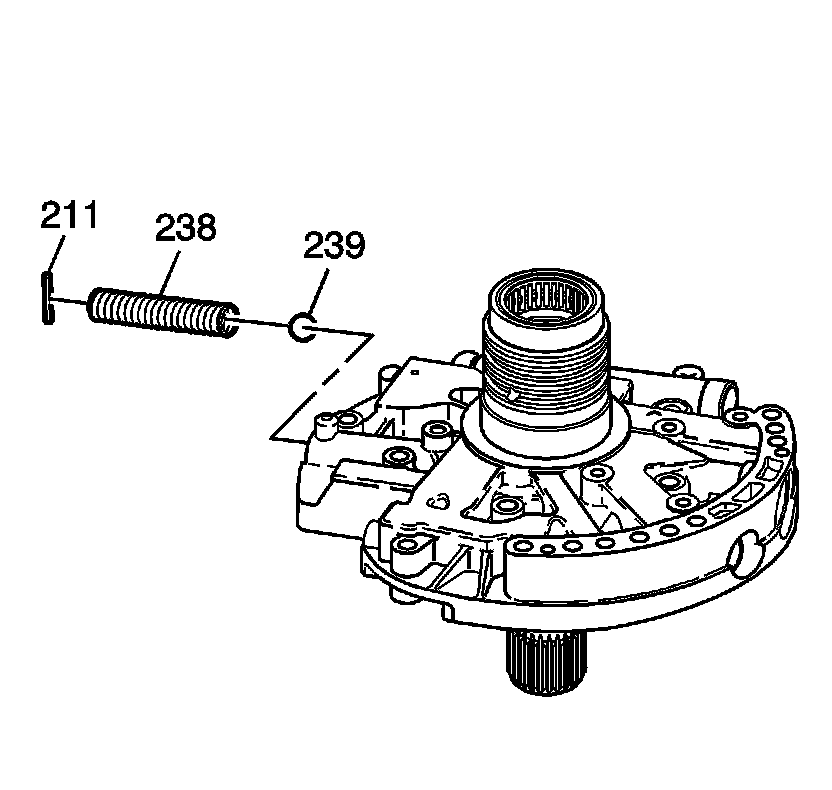 11. Remove the pressure relief spring (238) and the pressure relief ball (239).
