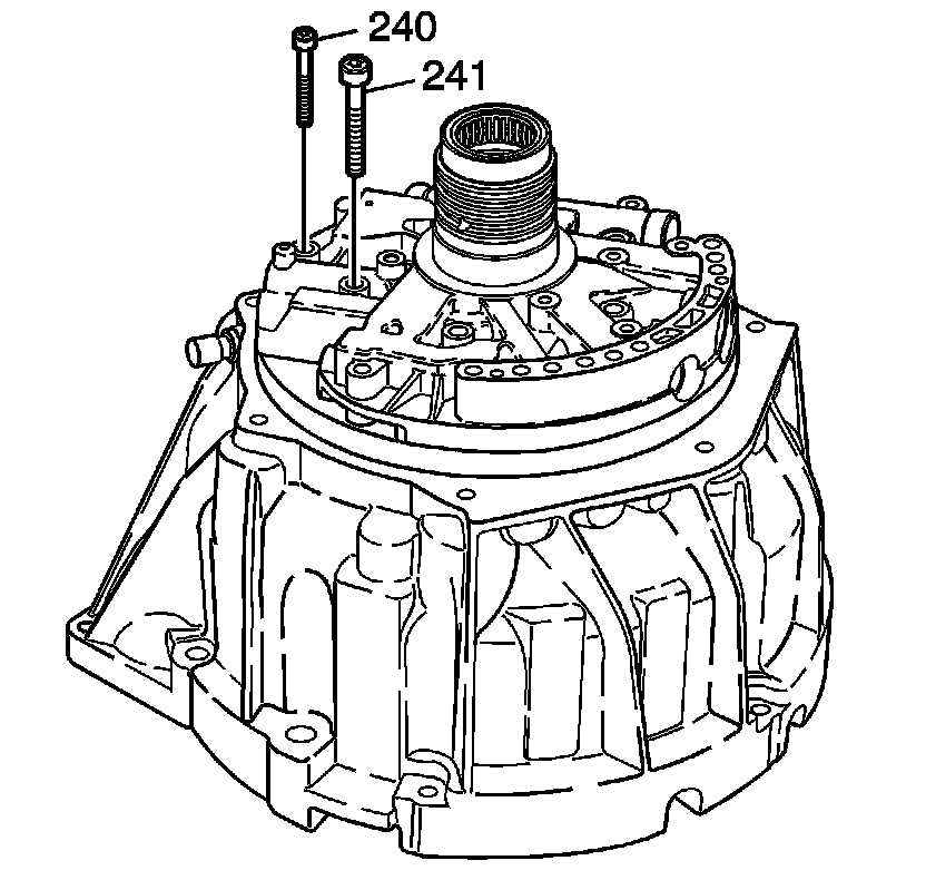 1. Remove the oil pump to torque converter housing bolts (240, 241).