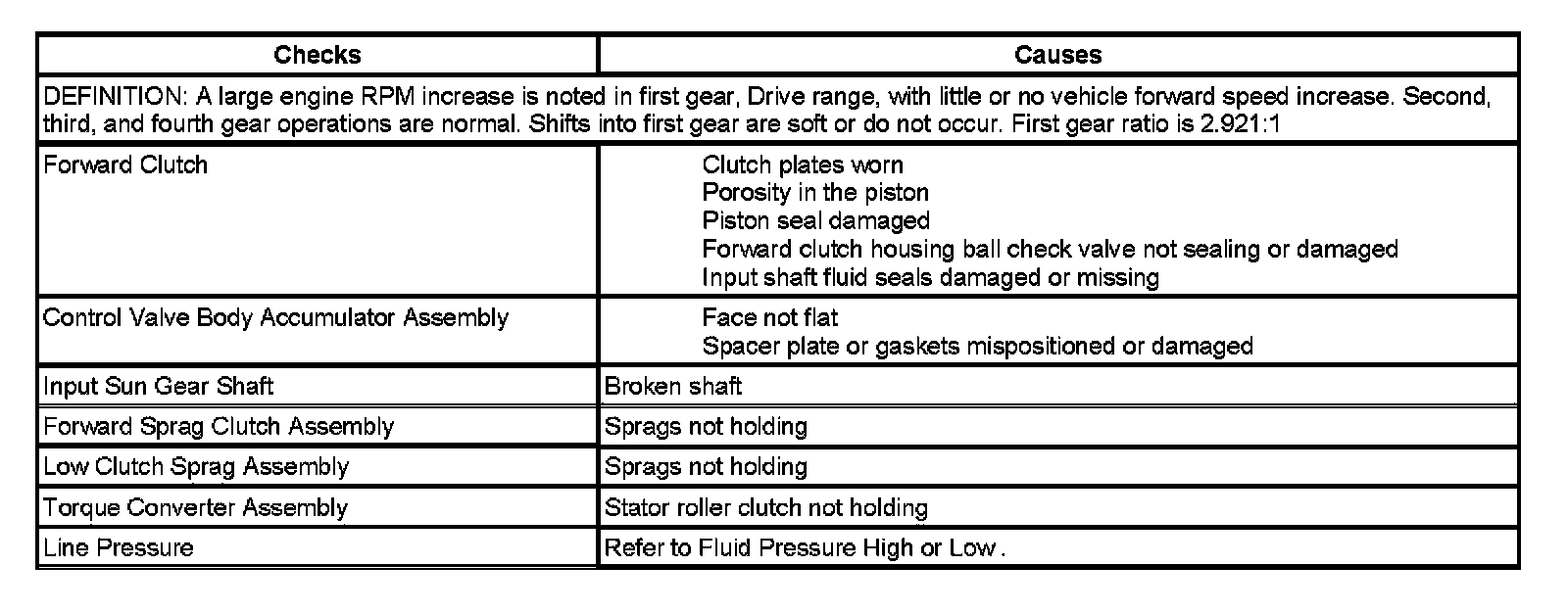 Slips or Shudders in First Gear