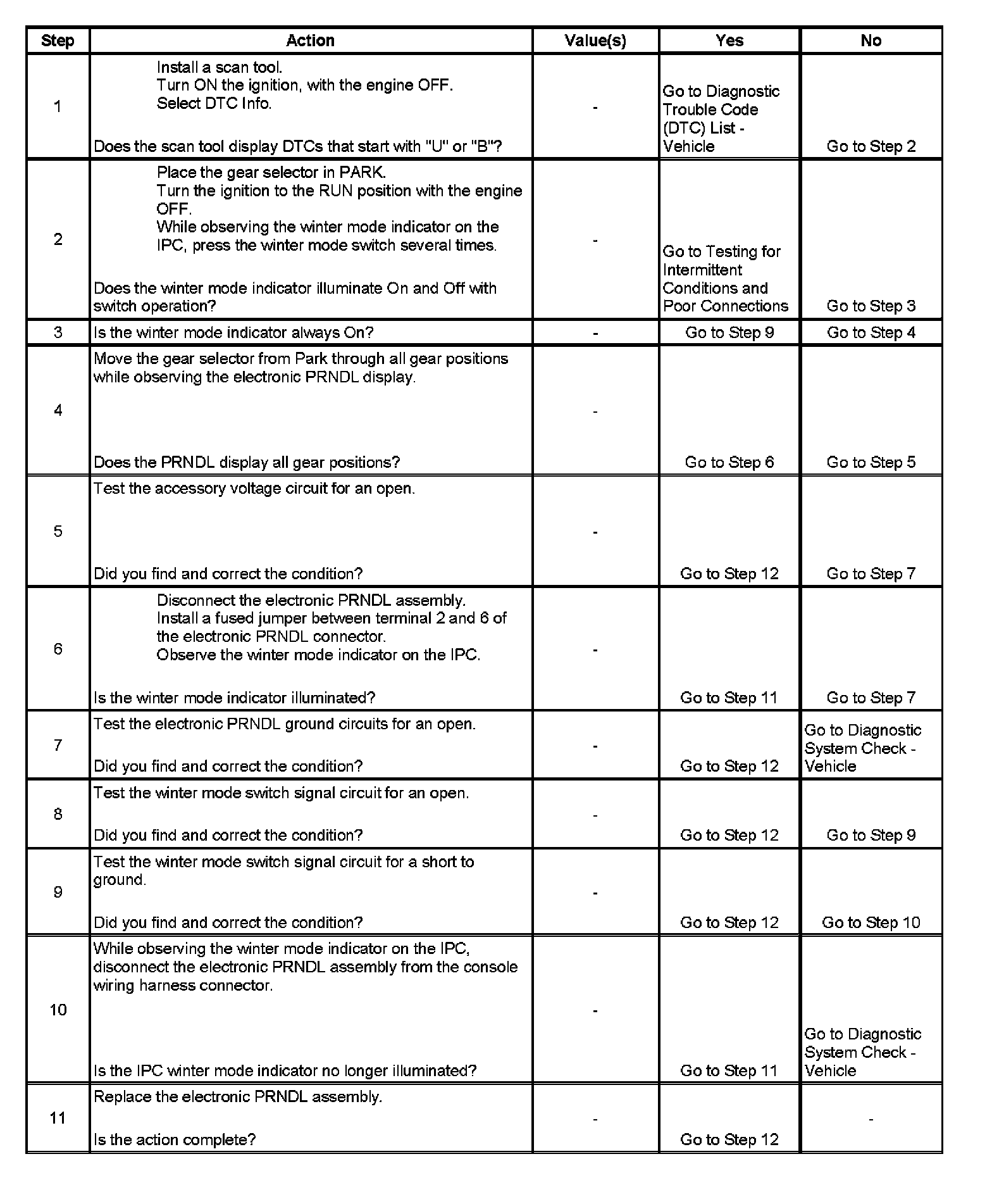 6. This step tests the winter mode circuit by bypassing the electronic PRNDL assembly.