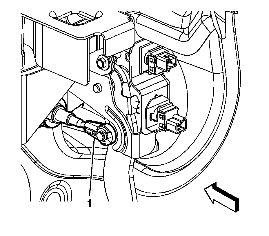 6. Install the clutch master cylinder push rod (1) to the clutch pedal arm integral stud.