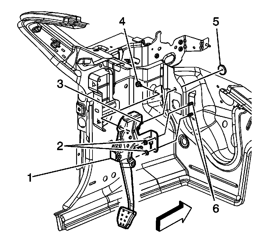 4. Remove the clutch pedal bracket to cowl nut (5).