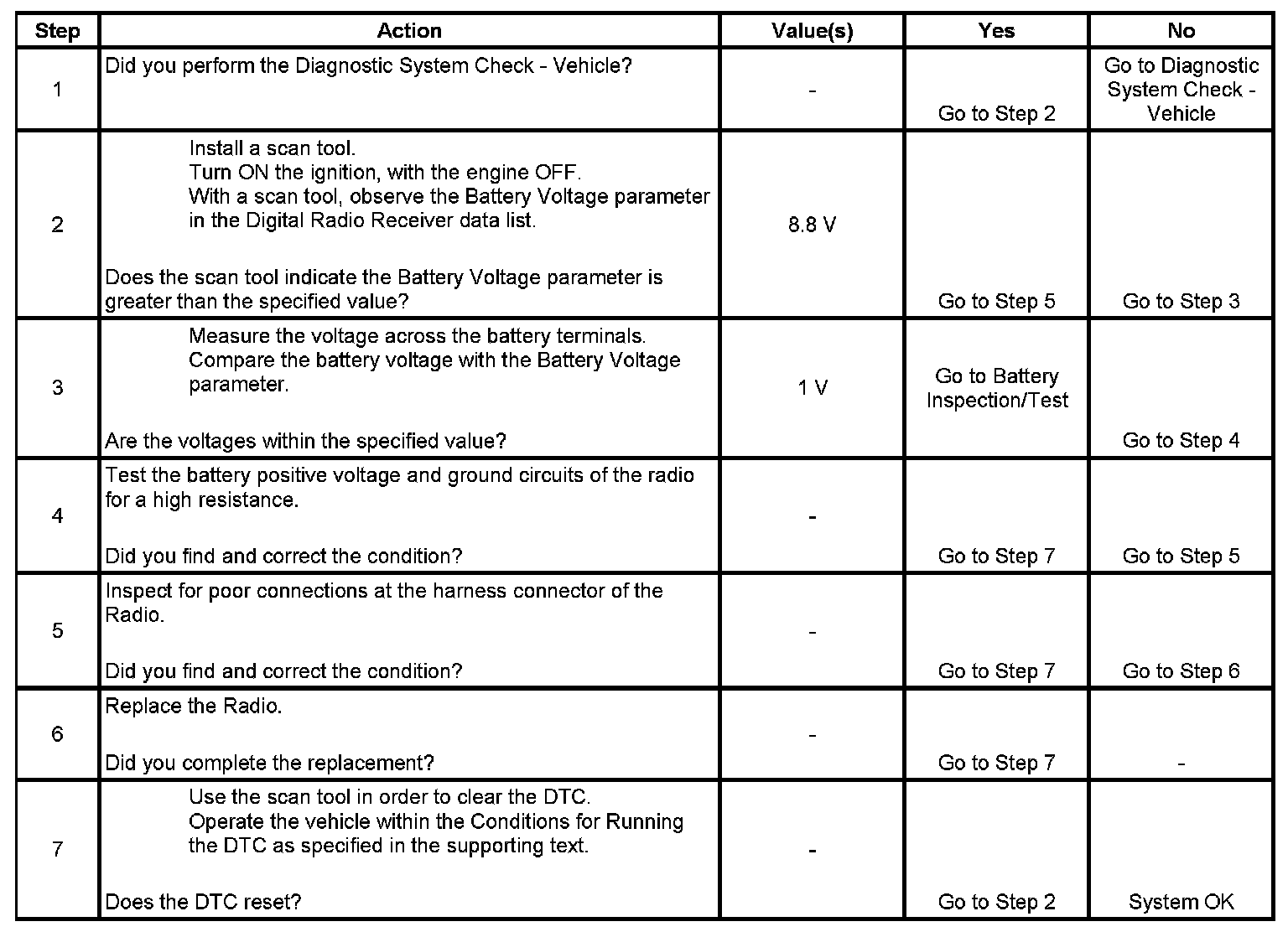 This DTC shall run only if the radio has power and ground, and the ignition is not in START mode. This DTC shall execute regardless of the battery voltage.