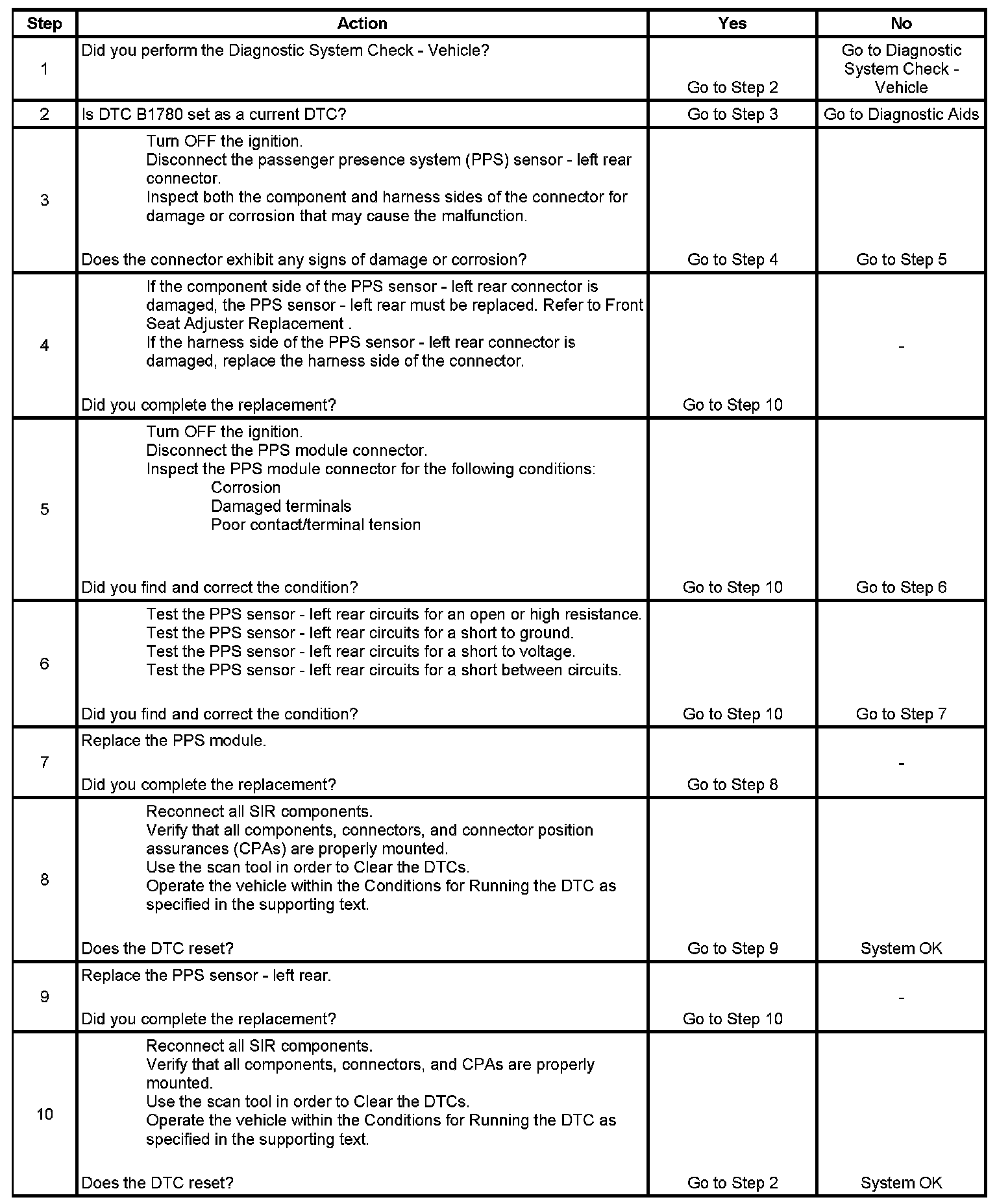 The passenger presence system (PPS) sensor - left rear circuit consists of the PPS sensor - left rear and the PPS module. The PPS module monitors the PPS sensor - left rear. If the sensing and diagnostic module (SDM) detects a malfunction within the sensor - left rear circuit, a DTC will be set.