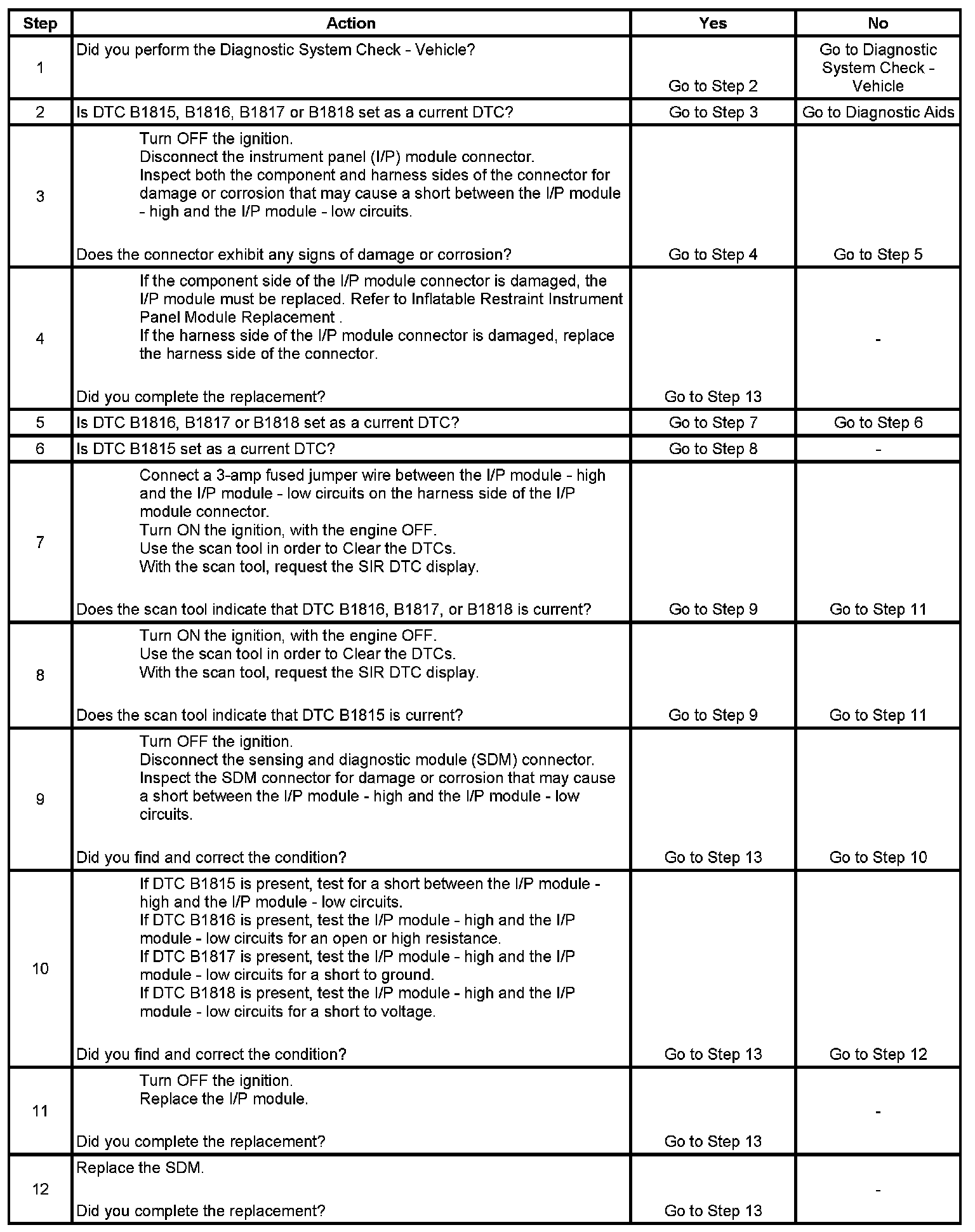 * DTC B1817 will set when the SDM detects a short to ground in the I/P module deployment loop.