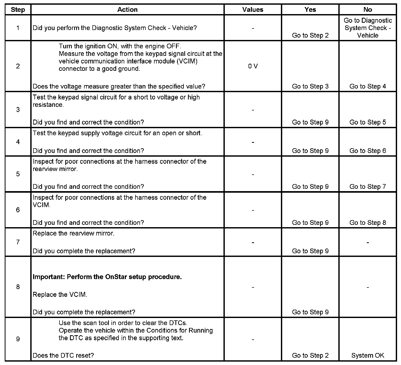 * The VCIM will ignore all inputs from the OnStar(R) button assembly.